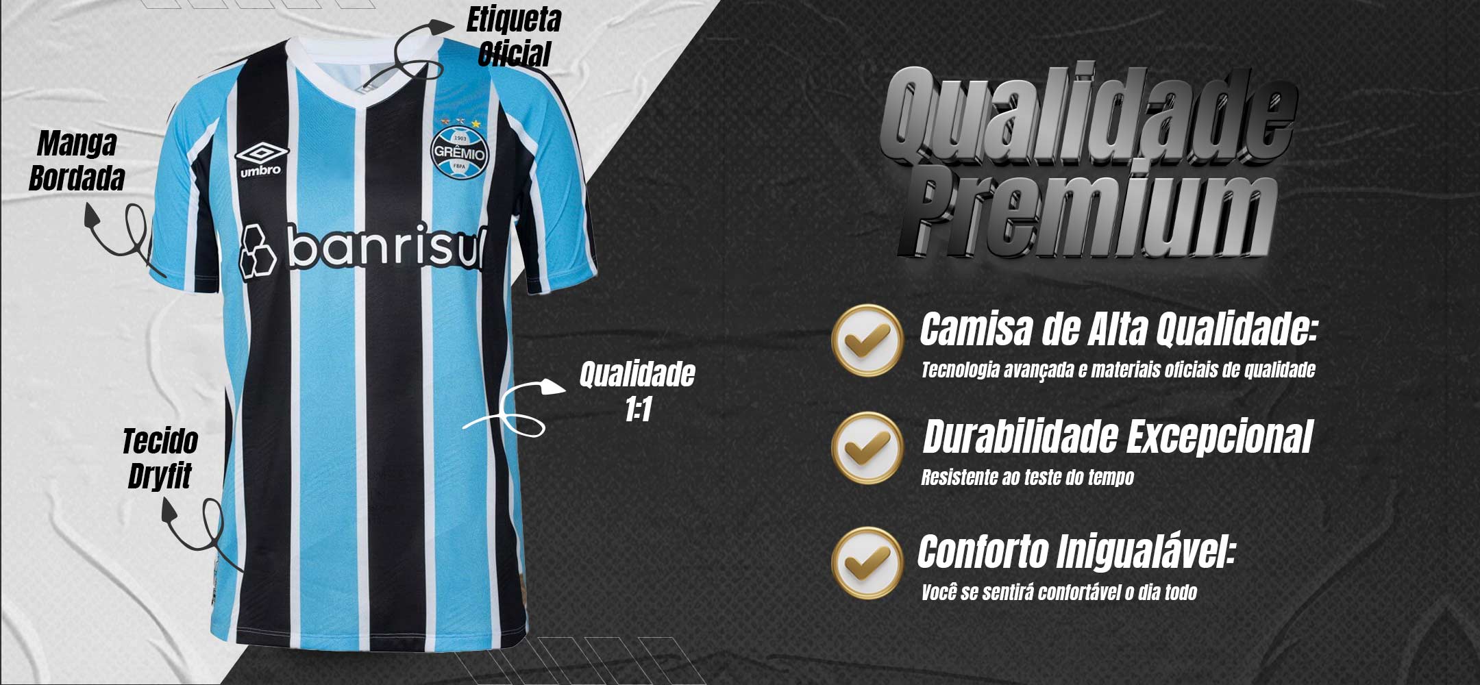 Confeccionada com tecido de alta performance, a camisa oferece conforto e respirabilidade, ideal para torcedores apaixonados que desejam demonstrar seu amor pelo Grêmio dentro e fora dos estádios.